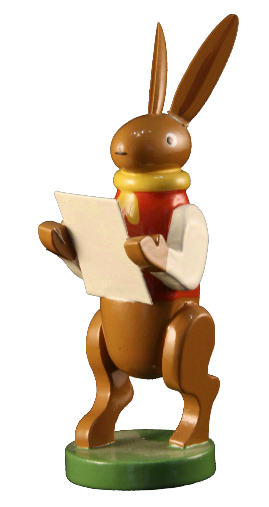 Hase mit Liederbuch und Flöte
