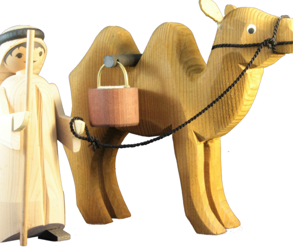 Kameltreiber mit Kamel Wasserkessel tragend