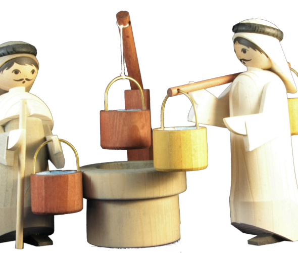 zwei Wasserträger mit Brunnen