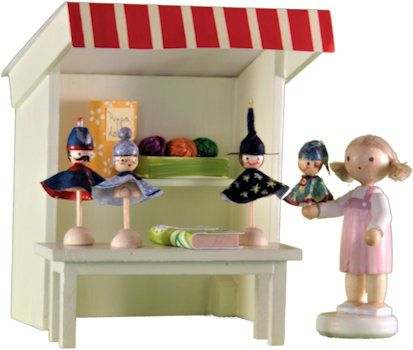Puppenspielerin mit Bude