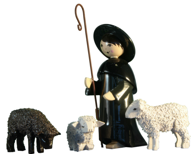 Hirte mit drei Schafen stehend 25. Januar 20219. August 2024 • Roland Paul Ulmik Figur 7 cm UL 130010 Hirte mit drei Schafen stehend farbig Fr. 82.00