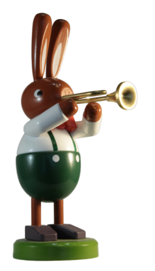 Hase mit Trompete 29. Januar 20218. Februar 2025 • Roland Paul Werkstatt LeichsenringFigur 16 cm LE 224-2-593 Hase mit Trompete Fr. 58.00