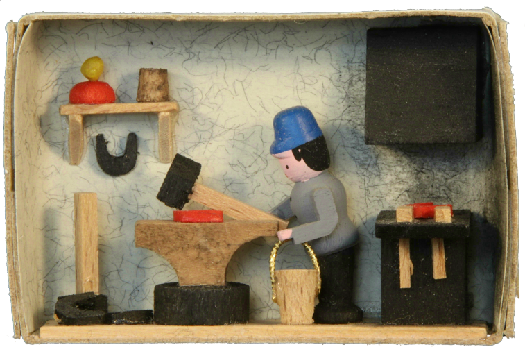 Schmiede ZH Schachtel 20. August 202129. August 2024 • Roland Paul Gisbert Neuber GN 28-57 Schmiede Zündholzschachtel Fr. 30.00