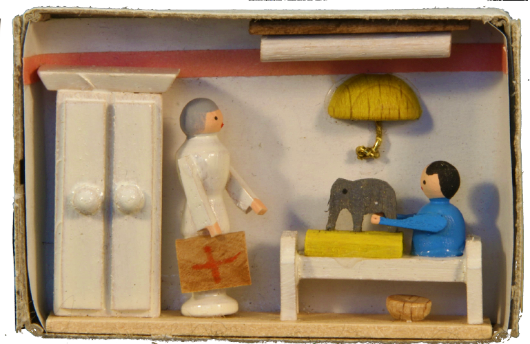 Krankenzimmer ZH Schachtel 21. August 202129. August 2024 • Roland Paul Gisbert Neuber GN 28-80 Krankenzimmer Zündholzschachtel Fr. 30.00